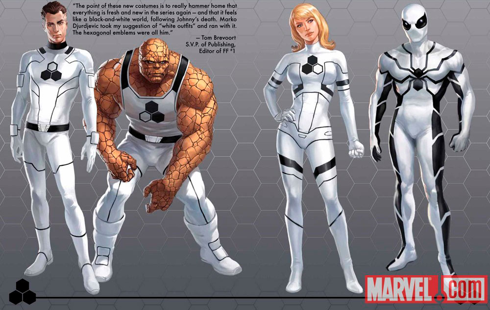 Ναι έγινε και αυτό σε κάποια φάση. Ήταν μετά από τον θάνατο του Human Torch, με τον Spider-Man να γίνεται μέλος της ομάδας των τεσσάρων και να αποκτάει την ασορτί στολή, λευκού χρώματος με λίγο μαύρο, η οποία ήταν προηγμένης τεχνολογίας. Μάλιστα η στολή του έδινε δικαίωμα να αλλάζει χρώμα, με αποτέλεσμα αρκετές φορές ο Peter να την «χρωματίζει» στο αγαπημένο του κόκκινο και μπλε!