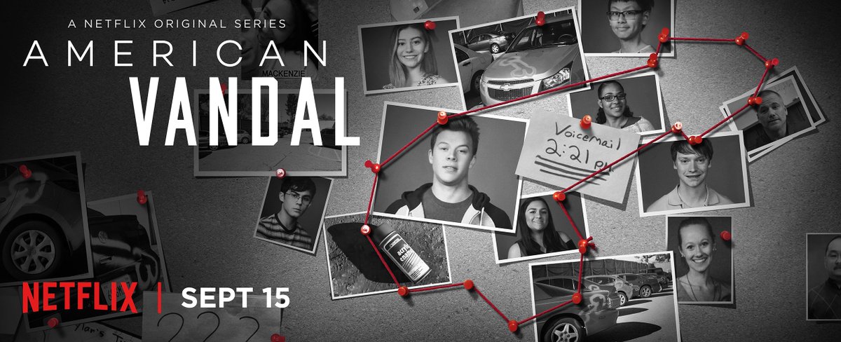 Μετά την μεγάλη επιτυχία του Making a Murderer, έρχεται το American Vandal. Μια σειρά που προοριζόταν ως παρωδία των true crime documentaries, εξελίχθηκε ως μια μεγάλη επιτυχία. Η ιστορία περιστρέφεται γύρω από ένα περιστατικό βανδαλισμού των αυτοκινήτων του προσωπικού ενός σχολείου.