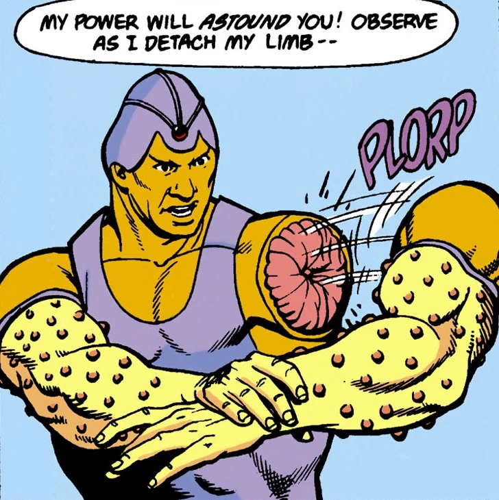 Ακόμα χειρότερος είναι ο Arm-Fall-Off-Boy με την ιδιαίτερη δύναμη του να πέφτει το χέρι του, να το πιάνει με το άλλο (το καλό) και να χτυπάει πράγματα και ανθρώπους με αυτό