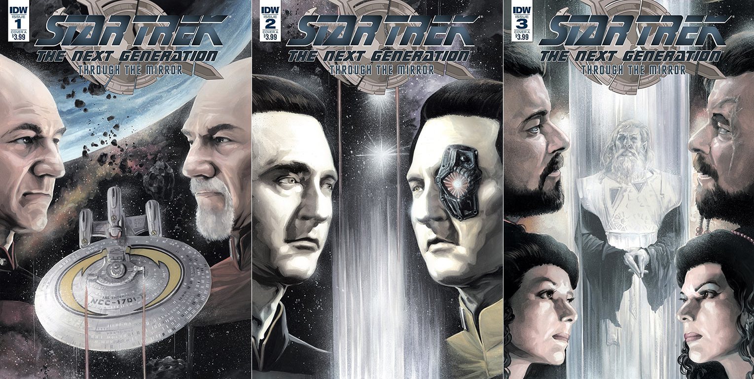 Μέσα στο comic βλέπουμε τις αντίθετες – κακές εκδοχές όλων των χαρακτήρων του Next Generation οι οποίοι όπως βλέπουμε στο μυαλό τους έχουν την απόκτηση δύναμης και χρημάτων (το αντίθετο από αυτά που υποστηρίζει η Ομοσπονδία). Το Comic τελειώνει μέτα από πολλούς θανάτους και καταστροφές με την κατάληψη και κλοπή από μέρος του Picard με την βοήθεια του Riker, του νέου αστρόπλοιου της αυτοκρατορίας ISS Enterprise – D .Φυσικά γνωρίζοντας μεγάλη επιτυχία, η IDW προχώρησε σε μια δεύτερη limited σειρά με την ονομασία Through the Mirror όπου μας συνεχίζει από εκεί που μας άφησε το Broken Mirror. Το ISS Enterprise έχοντας ανακαλύψει μέσω μιας περίεργης συγκυρίας, που την βλέπουμε σε μια μίνι σειρά που τρέχει στις τελευταίες σελίδες του κάθε τεύχους, την ύπαρξη του σύμπαντος της Ομοσπονδίας όπου και κατευθύνθηκε με σκοπό την πειρατεία και την κλοπή πόρων από το δικό μας σύμπαν.