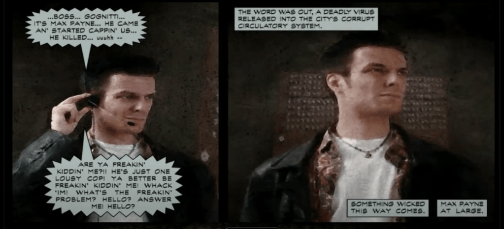 Η ιστορία του Max Payne είναι απλή. Ο Max είναι ένας αστυνομικός στη Νέα Υόρκη όπου είχε αποκτήσει όλα όσα ονειρευόταν: μία καλή δουλειά και μία όμορφη οικογένεια. Όλα αυτά, όμως, έμελλε να γίνουν παρελθόν μετά τη δολοφονία της γυναίκας του και της κόρης του στο ίδιο τους το σπίτι από μία ομάδα ναρκομανών. Το παιχνίδι ξεκινάει με τον Max, τρία χρόνια μετά από αυτό τον εφιάλτη, να έχει παραιτηθεί από το σώμα και να έχει εισχωρήσει ως μυστικός πράκτορας της Δίωξης Ναρκωτικών στη Μαφία, αναζητώντας εκδίκηση από αυτούς που θεωρεί ως υπαίτιους. Το ξέρω, η ιστορία ακούγεται κλισέ αλλά όπως λέει και ο Max: “Nothing is a cliché when it’s happening to you”. Αυτό που κάνει την ιστορία να ξεχωρίζει, όμως, είναι η παρουσίασή της. Γνωρίζοντας τις δυσκολίες της εποχής στον τομέα των γραφικών (βλέπετε τότε ήταν εξωπραγματικό ακόμα και το να κινείται το στόμα των ομιλούντων χαρακτήρων όπως κατάφερε να κάνει το Half-Life, πόσο μάλλον το να έχουμε πανέμορφα cinematics), η Remedy και κυρίως ο Sam Lake, ο σεναριογράφος και το πρόσωπο του Max, αποφάσισε να εξιστορήσει με έναν διαφορετικό τρόπο τα γεγονότα. Χρησιμοποίησαν πάνελ από γραφικές νουβέλες, τις οποίες αφηγείται ο ίδιος ο Max (για την ακρίβεια η φωνή του εξαιρετικού  James McCaffrey) ούτως ώστε να μας ξεναγήσουν στο neo-noir, gritty κόσμο που έφτιαξαν.